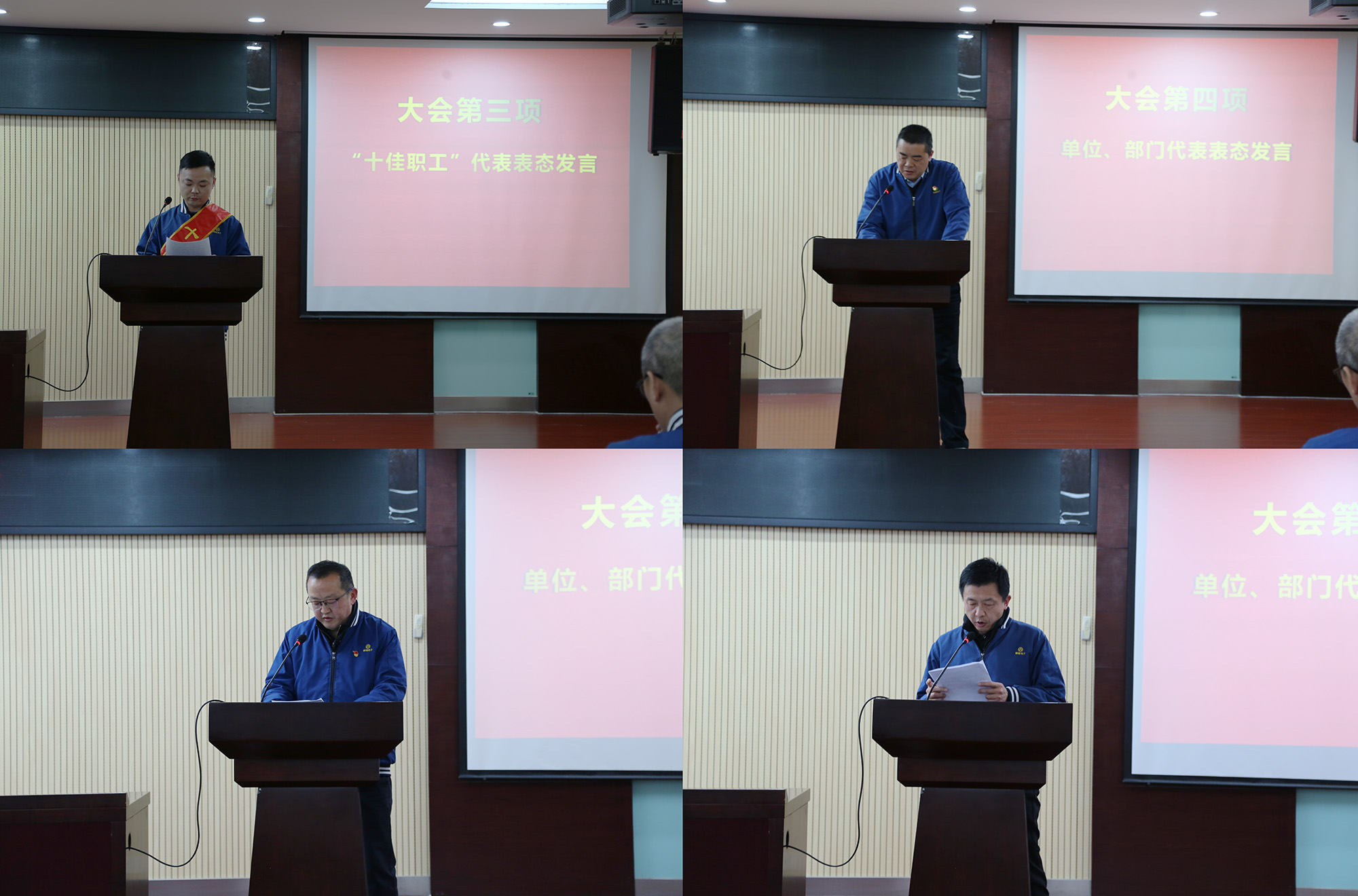 与会领导为受表彰的2025年度公司“十佳职工”颁发荣誉证书及奖金。“十佳职工”、经营单位和职能部门代表分别作表态发言。